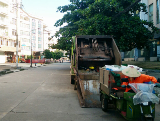 針對東興市國門城市的特點,公司采用機械作業(yè)與人工作業(yè)相結合的模式。人工作業(yè)方面,城區(qū)每天早上8點鐘前,環(huán)衛(wèi)工人完成大掃,輪班保潔,直到晚上11點鐘。機械作業(yè)方面,公司采用高壓清洗車對東興市城西區(qū)域路段進行清洗作業(yè),采用小掃路車對市區(qū)小街巷進行清洗作業(yè),全天候人工與電動三輪車巡回保潔,管理人員用電瓶車進行巡檢督查。垃圾清運則采用壓縮式收集車巡回收集城區(qū)各路段垃圾,采用5臺勾臂車對城西各區(qū)域100多個垃圾箱中垃圾進行轉運,垃圾壓縮車對全城的垃圾桶中垃圾進行循環(huán)收集,保證全城垃圾不落地。新型模式下的環(huán)衛(wèi)作業(yè)有效地提升了東興市國門城市形象及環(huán)衛(wèi)作業(yè)管理水平,受到業(yè)主單位及主管單位好評。