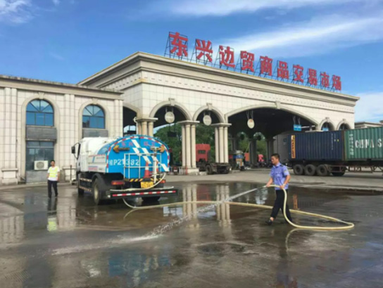 ▲對國門口岸旅游熱點景點進行沖洗作業(yè)