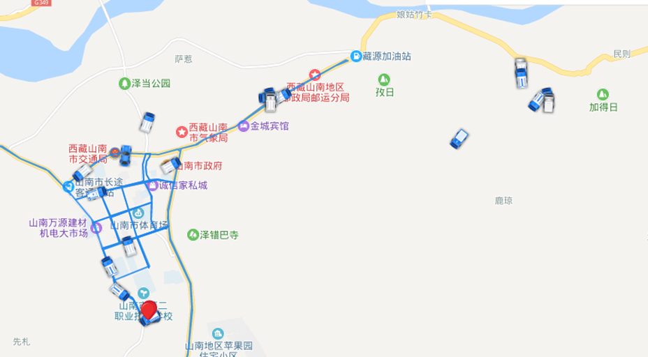 圖為山南市國(guó)策環(huán)保環(huán)保系統(tǒng)中車輛作業(yè)路線概況