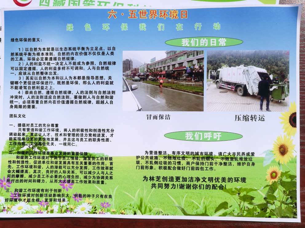 2017年6月5日,在林芝市巴宜區(qū)廈門廣場開展《六五世界環(huán)境日》環(huán)保宣傳活動,——“青山綠水便是金山銀山”,呼吁廣大市民、游客等廣大群眾參與保護雪域高原最后的碧水藍天;此次活動由林芝市環(huán)保局牽頭組織舉辦,參與活動單位:林芝市市政管理局、西藏國策環(huán)保科技股份有限公司林芝分公司、林芝市農(nóng)牧局、林芝市國土資源局、林芝市發(fā)改委、中國華能、巴宜區(qū)環(huán)保局、林芝市商務(wù)局、林芝市科技局、林芝市林業(yè)局等單位。活動現(xiàn)場也聚集市民、游客等參與環(huán)保宣傳和學(xué)習(xí)環(huán)保知識。