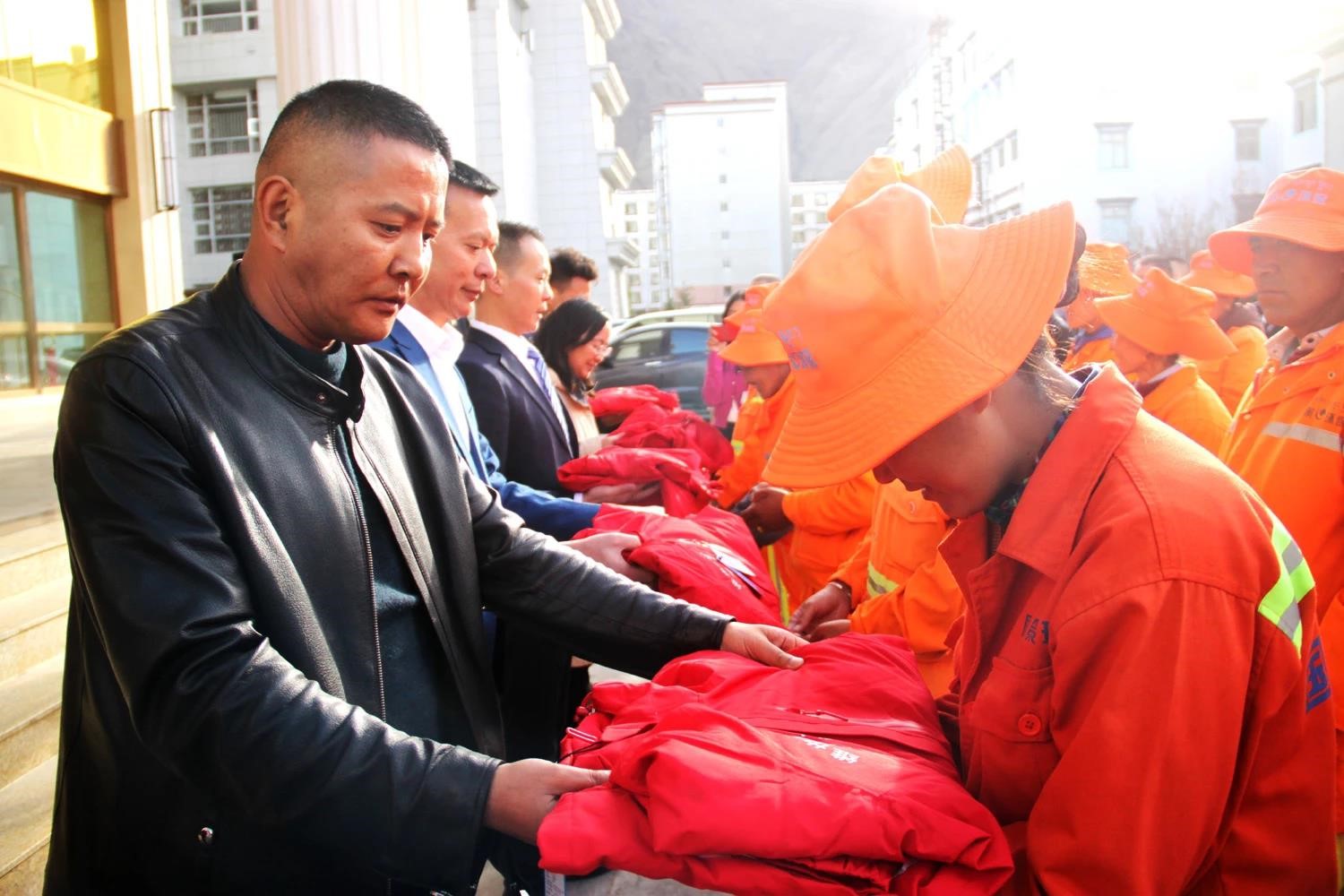 乃東區(qū)副區(qū)長格桑羅布、乃東區(qū)住房和城鄉(xiāng)建設(shè)局局長張俊、國策公司負責人次仁旺慶應(yīng)邀參加活動,并共同為環(huán)衛(wèi)工人發(fā)放了保暖御寒的嶄新環(huán)衛(wèi)工裝。