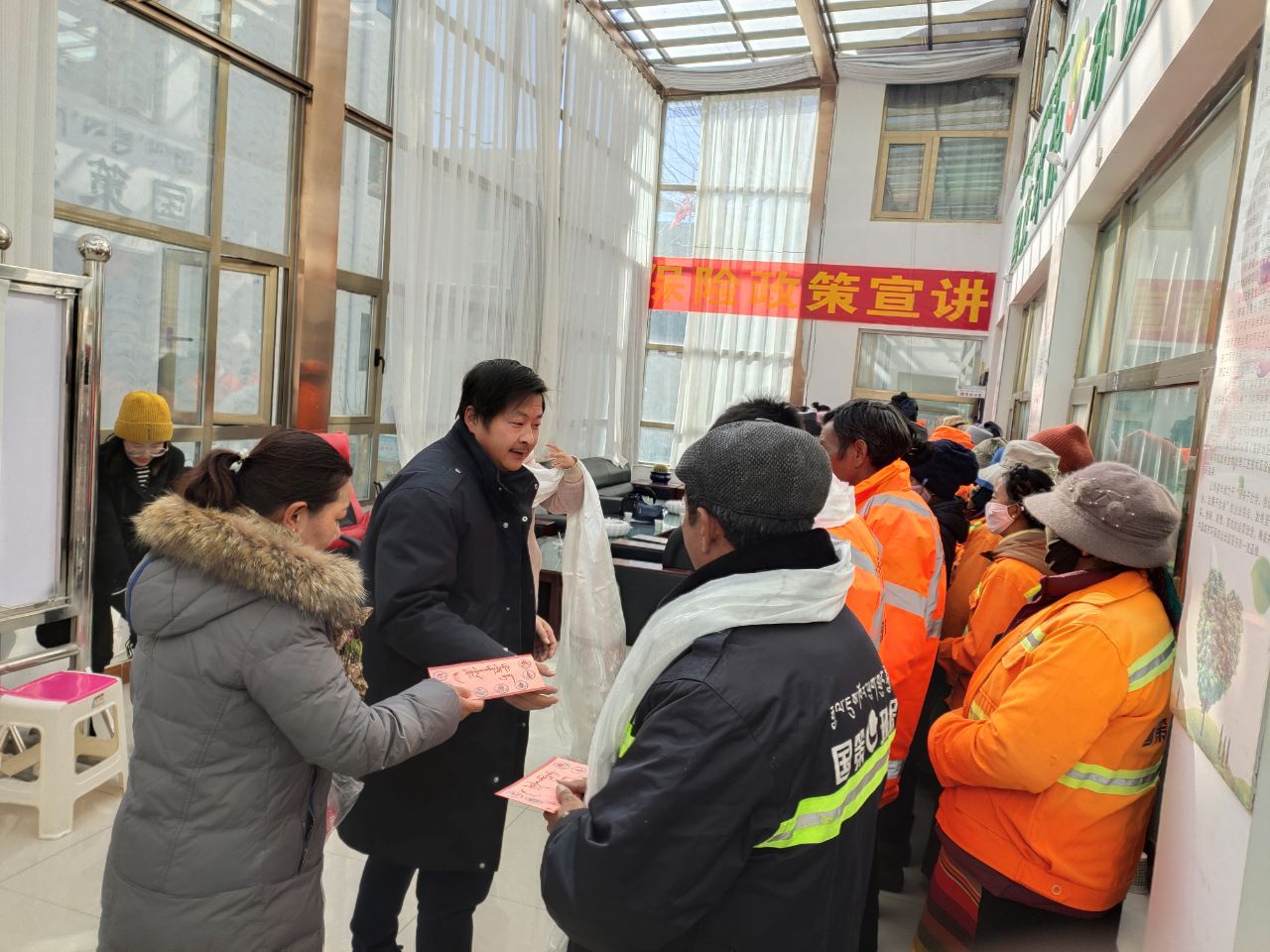 1月13日,日喀則桑珠孜區(qū)民政局區(qū)長前往國策環(huán)保日喀則分公司慰問公司環(huán)衛(wèi)工人,為他們一一獻上哈達,發(fā)放新年慰問金,向城市美容師致以敬意,并向他們送出了誠摯的新年祝福!