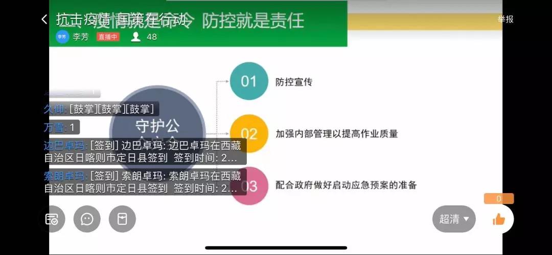 以“抗擊疫情,國策環(huán)保在行動”為主題,公司防疫小組定期對各分公司管理人員展開了線上的直播宣傳,對疫情防護(hù)、管理進(jìn)行指揮安排。對奮戰(zhàn)一線的管理人員、工作人員表示贊揚(yáng)與鼓勵。在疫情攻堅戰(zhàn)中,公司所有人員包括管理人員萬眾一心在特殊時期堅守崗位,公司時刻與員工一同戰(zhàn)斗!